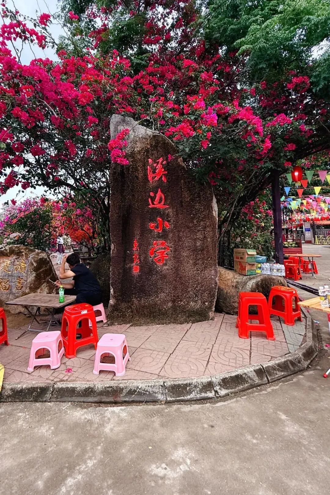 海南万宁溪边村,座落在万宁市万城镇,据传是文天祥堂弟文天瑞后裔聚居地,因小溪穿村而过得名,有“省花之村”称号,为四椰级乡村旅游点,是电影《麻花特开心2》取景地。村中有90亩三角梅基地,每年2-4月为盛花期。建有溪边书屋、民俗博物馆、百福园、古树公园;并有羊栏咖啡厅等风味小吃。