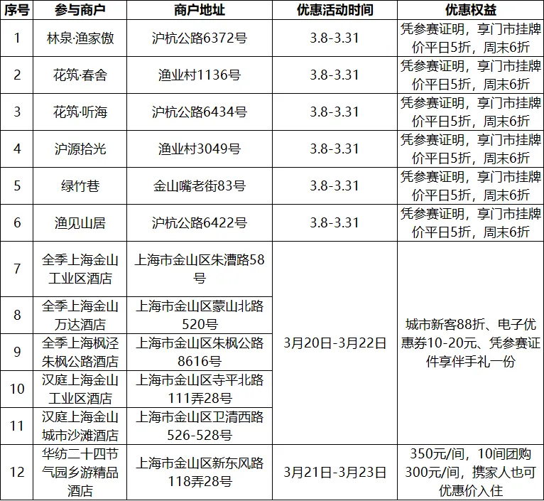 景点半价、酒店特惠…金山半马“吃住行购玩”福利来啦!