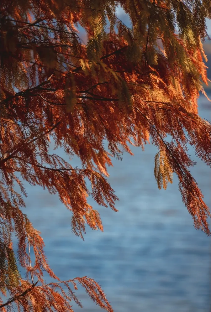 沿着水岸生长,染上暖红与锈金
