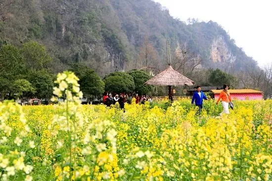 人间三月,春风送暖,张家界黄龙洞景区的油菜花迎来盛花期。得益于连日晴好天气,景区内油菜花竞相绽放、金黄遍野,与周边青山、田园相映成趣,勾勒出醉人的春日画卷,吸引各地游客纷至沓来踏青赏花、打卡留念。