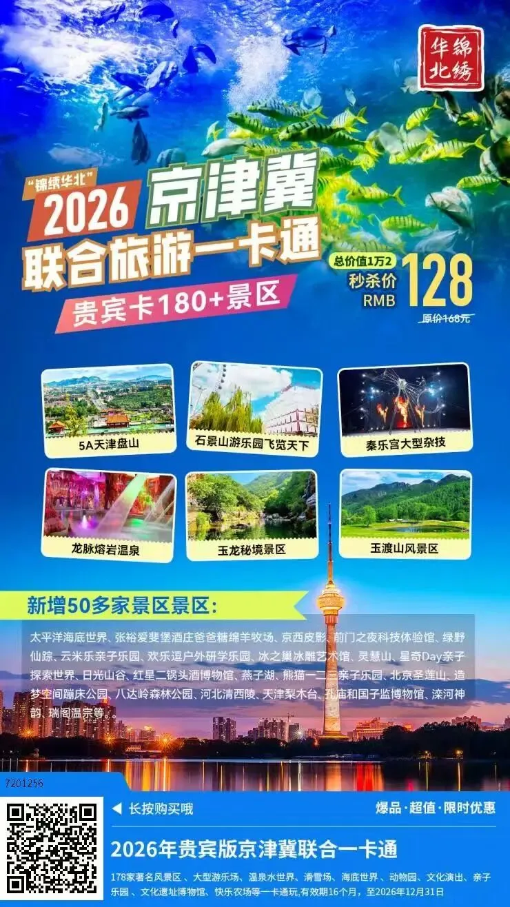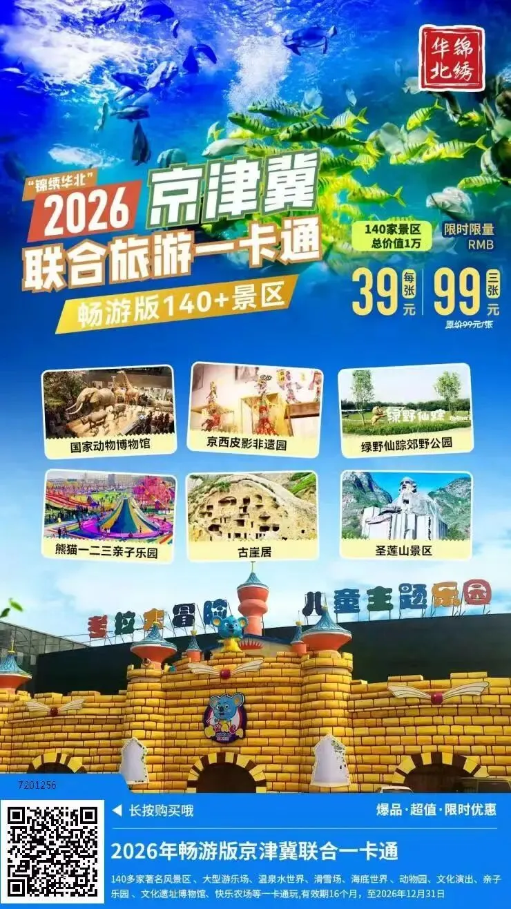 巨划算!39元游玩130多家景区,2026锦绣华北旅游年票畅游版热卖,无需预约,不限制周末,省钱又省心