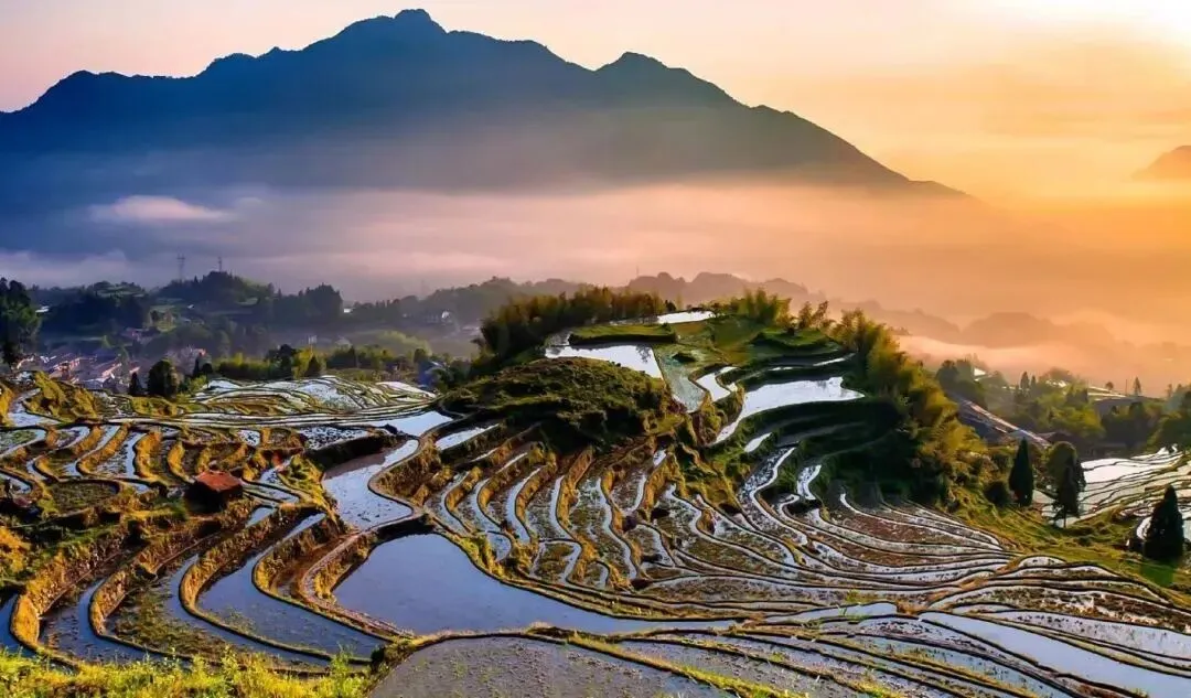 梯田一层一层。