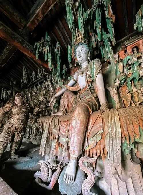 有个罗汉眉头皱着,像是在想什么难题,有个菩萨微微侧着头,眼神里带着点调皮,还有些力士张着嘴像是在喊什么,那种生动劲儿,让你觉得这些泥塑不是工匠捏出来的神像,是他们认识的某个人,甚至可能就是他们自己。这才是中国古代艺术最牛的地方,不是追求完美追求标准,是敢把人的真实样子放进神的世界里,把神拉下来当人看,又把人的那点精气神儿塑成神的模样,这种自由度和想象力,比那些正襟危坐的大佛有意思多了。