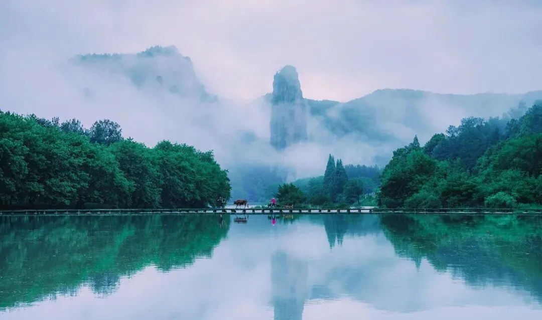 下午游览鼎湖峰和小赤壁,傍晚去朱潭山等待夕阳下的石桥与倒影 。