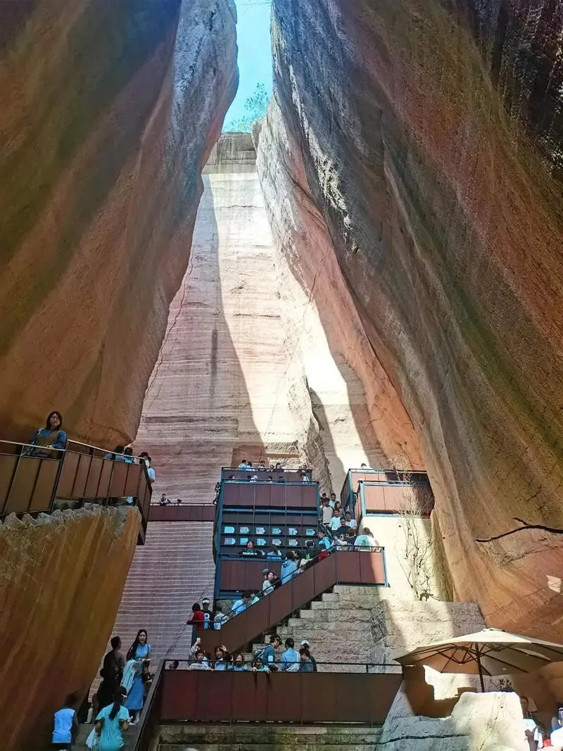 悬崖栈道:蜿蜒于峭壁之上,全长1700级台阶,沿途可欣赏峡谷深邃与植被茂密。