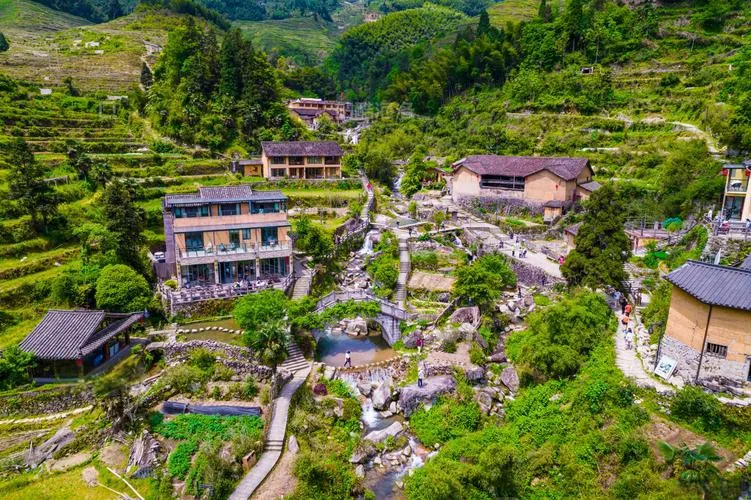 坑根石寨:村庄地处山涧河谷之旁,主要由木头与石块构筑,道路小巷也是由石块铺成。村中古民居采用石头奠基,墙体大多为黄泥夯筑,形成了独具特色的“坑根石寨”。这里还是畲族聚居地之一,游客可以体验畲族的传统服饰、饮食和婚嫁习俗等。