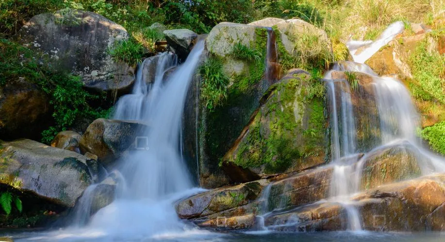 “龙吐水”三级瀑布群:瀑布群自然落差达600多米,水流从山涧倾泻而下,形成壮观的多级瀑布景观,雨季时气势尤为磅礴。