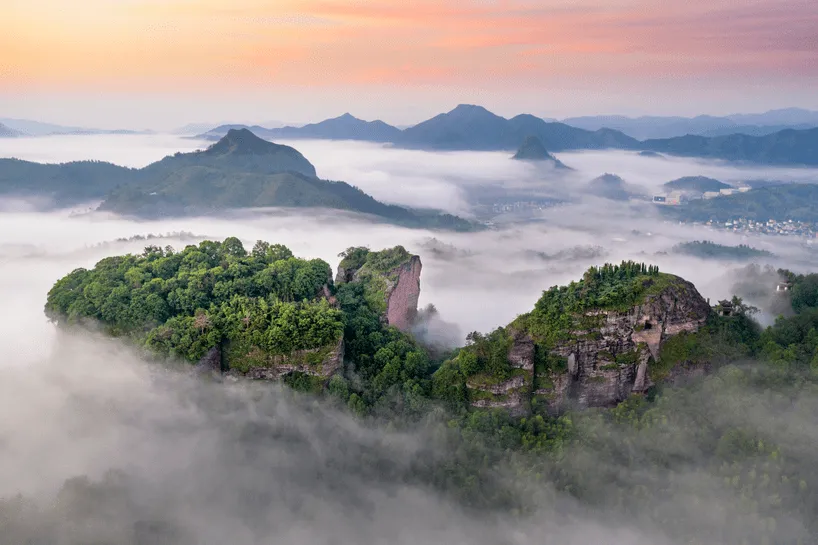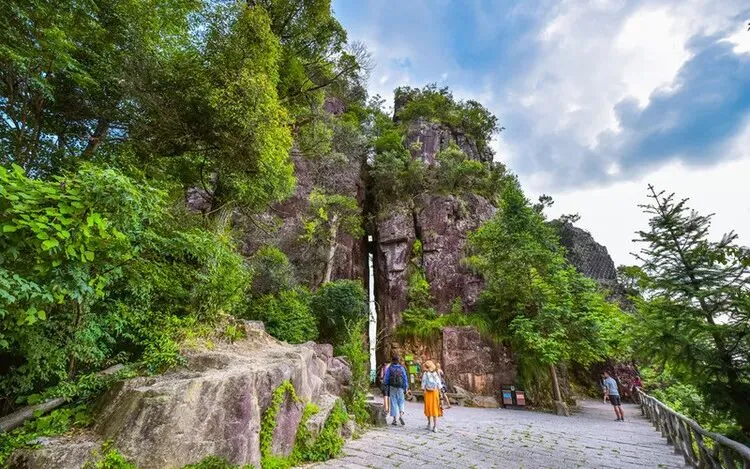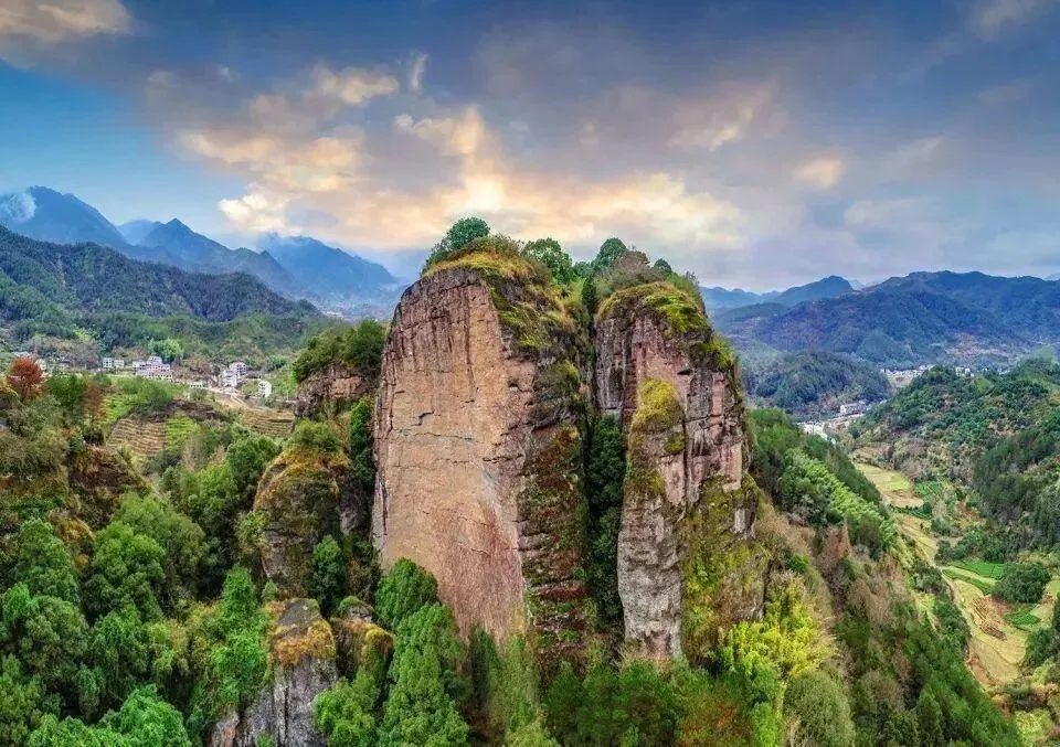 特色:它因东西两座丹霞岩峰对峙而得名,集丹霞地貌的"奇、伟、怪、险"与浓郁的畲族风情于一身。