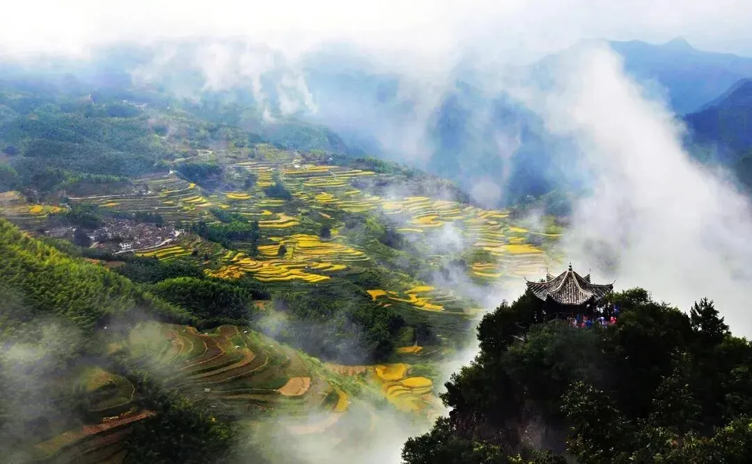 云海梯田:近2000亩高山梯田景观,层层叠叠,云雾缭绕时更显仙境之美。春季梯田油菜花盛开,秋季红枫银杏五彩斑斓,是摄影爱好者的天堂。