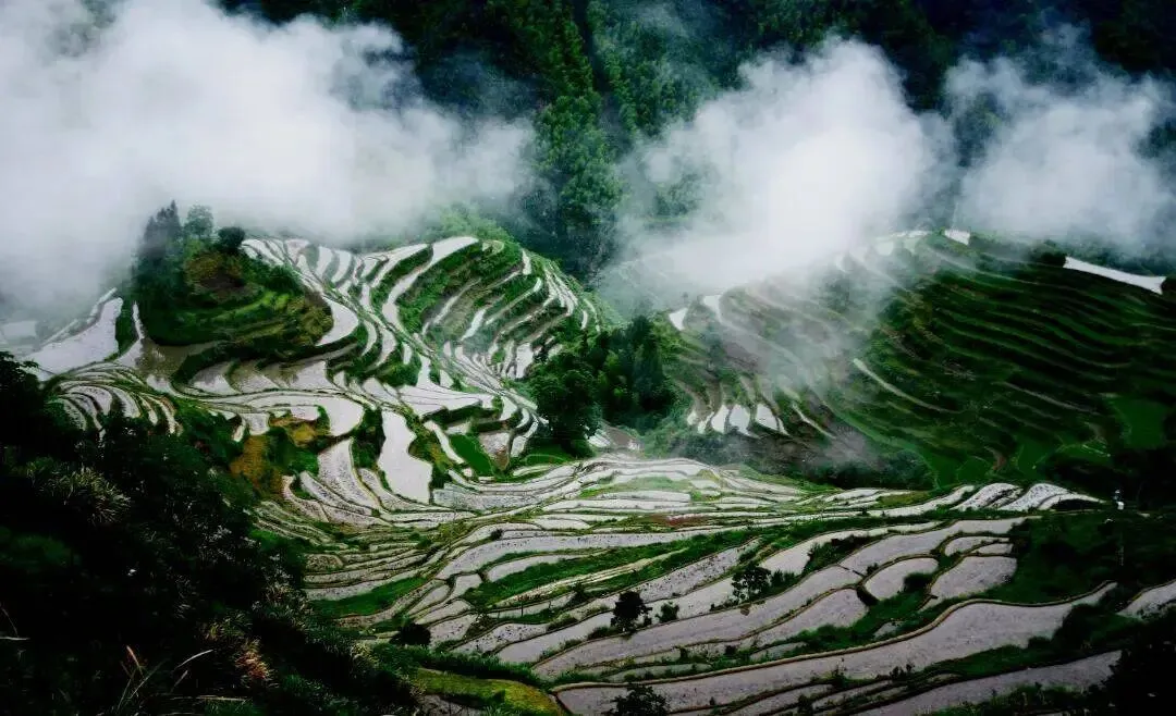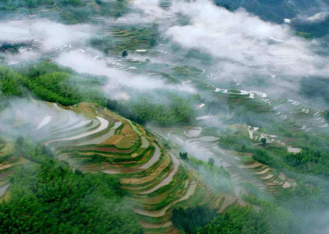 特色:它不仅是华东地区最大的梯田群,更是一个集湿地生态、农耕文化和旅游观光于一体的国家级公园。总面积51平方公里,梯田层叠达700余层,垂直高差超500米,跨越高山、丘陵、谷地三个地质带,形成“千米落差、千层梯田、千年历史”的“三千”奇观。
