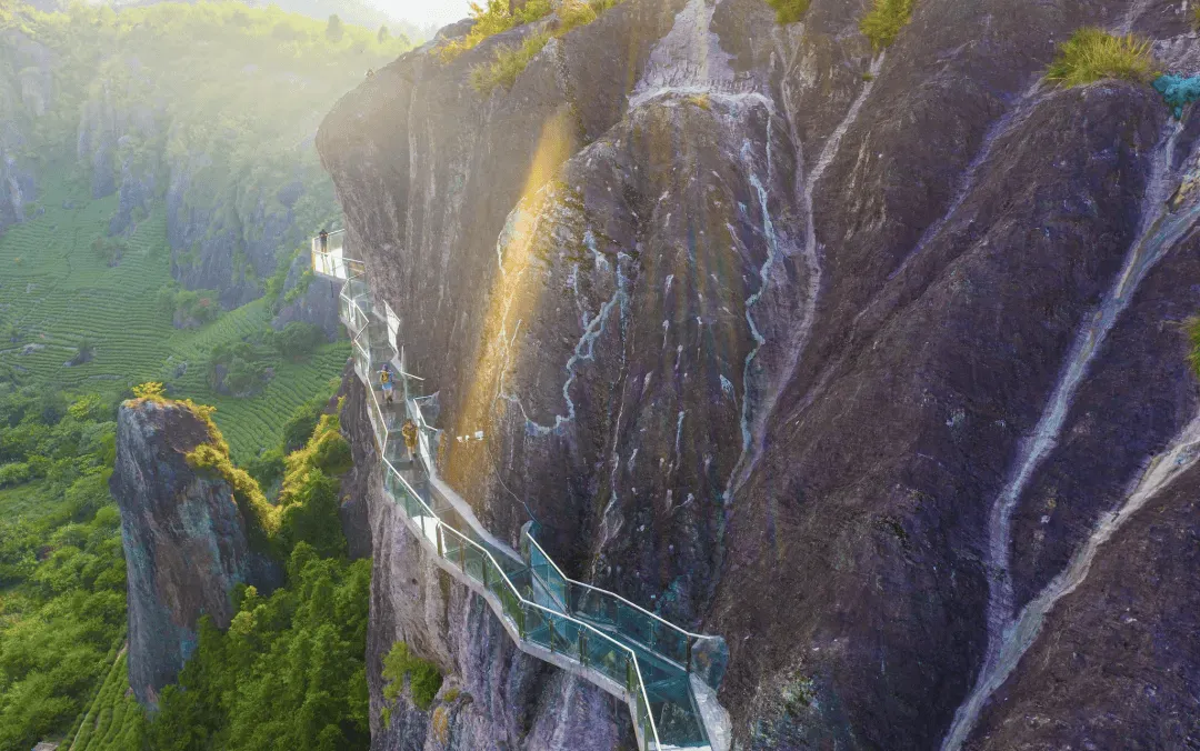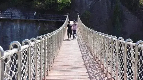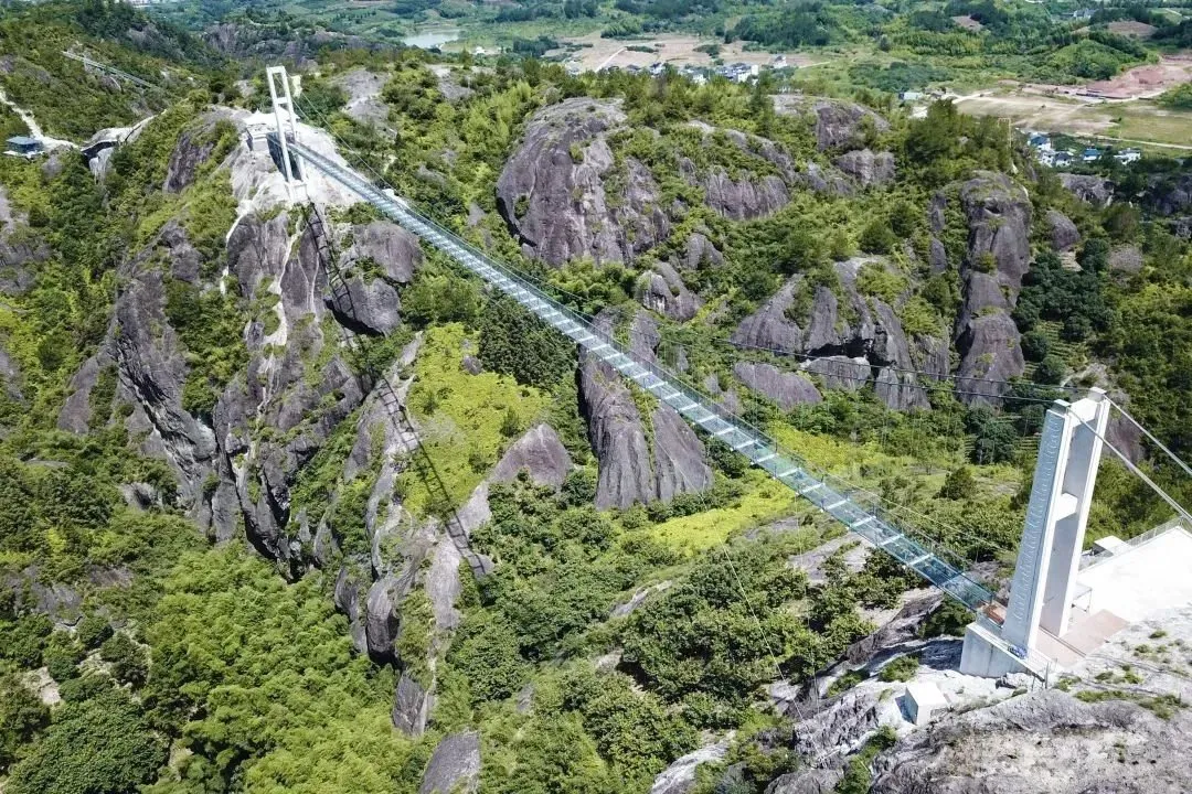 玻璃桥:横跨两山之间,全长近200米,桥面透明,行走时如悬空于峡谷之上,惊险与美景并存。