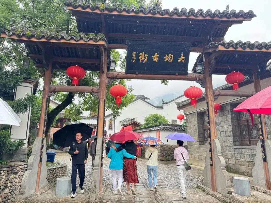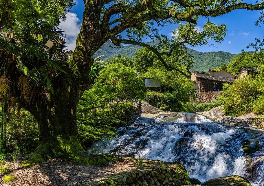 乌涧飞瀑:瀑布群像一条被峡谷拽住的白练,缠在青岩间、绕着巨石折转,形成“长幅动态画卷”。气势磅礴,为古村落增添了灵动韵味。