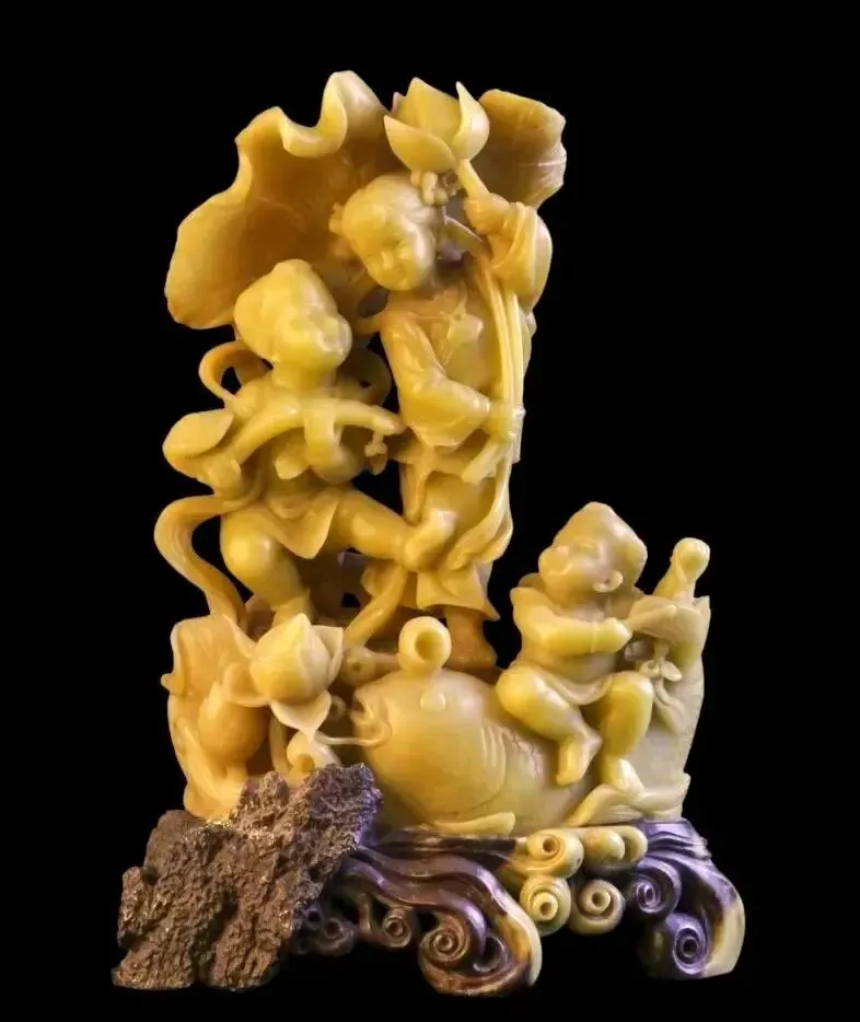 《丰收》:中国工艺美术大师张爱廷的作品。采用夸张手法,塑造了骑在大鱼上、神态欢快的孩童形象,寓意“连年有余,吉祥如意”。