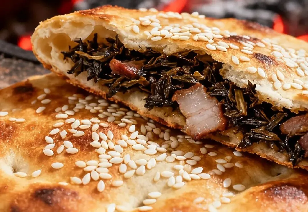 1、缙云烧饼:以面粉、鲜猪肉和梅干菜为原料,炭火烘烤至表皮金黄酥脆,内馅软糯油润。