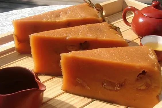 4、青田糖糕:糯米粉、猪肉、白糖蒸制,可加红枣、芝麻调味,色泽琥珀,软甜不腻。