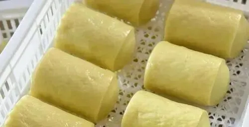 5、庆元黄粿:粳米用灰汁浸泡后蒸熟,捣制成金黄色年糕,口感软糯有嚼劲。