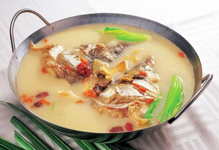 6、安仁鱼头火锅:以仙宫湖鳙鱼头为主料,加入紫苏去腥增香,汤底乳白浓郁,鱼肉细嫩。