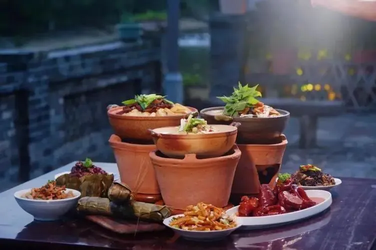12、遂昌风炉宴:以炭火风炉慢煨山珍河鲜,如“三层楼”火锅(酸菜、豆腐、土猪肉层层叠加),鲜辣暖胃。