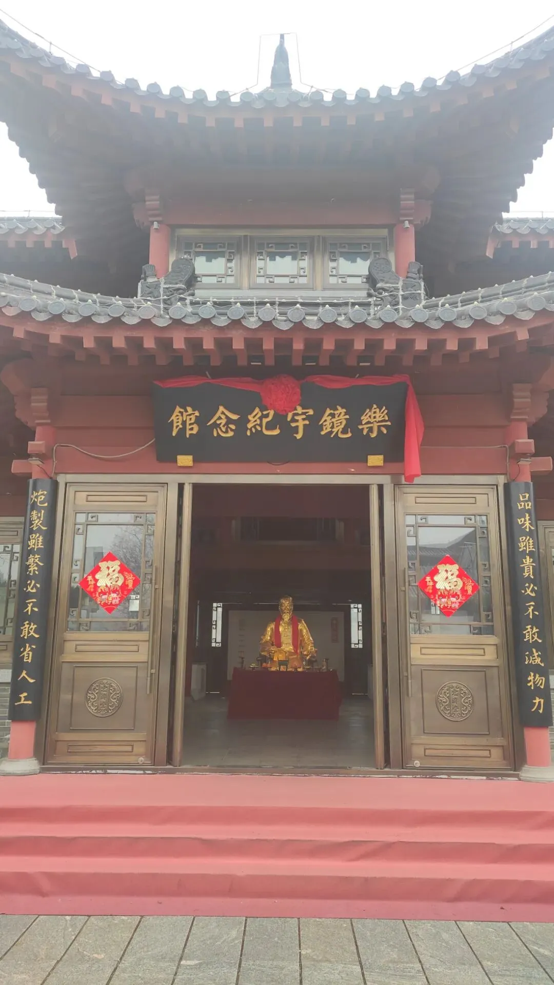 而我们今天的主角——阿胶,正是中医药宝库中公认的"滋补三宝"之一,早在《神农本草经》中就被列为上品,记载其"久服轻身益气",药用历史已有2000多年,这也是我们今天溯源之旅的文化根基。正是在这片深厚的中医药沃土之上,才有了宏济堂阿胶百年的创新与传奇,接下来的行程,我们就将一步步揭开它的神秘面纱。 参观完中医药文化墙,向后转,我们面对的就是整座景区的精神原点——乐镜宇纪念馆。