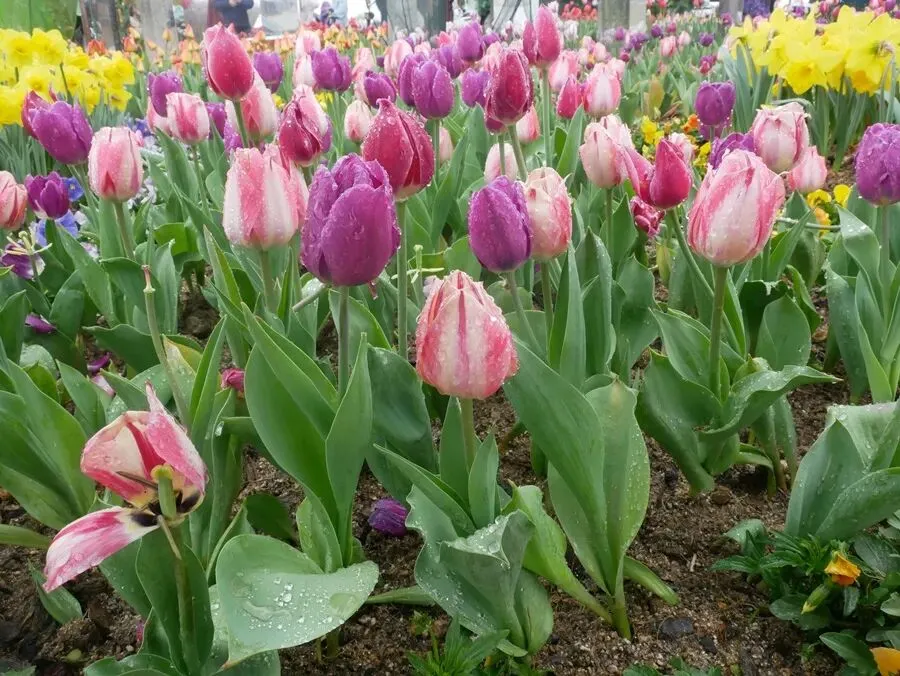 到了春夏这里开满一大片桃红、嫩黄色郁金香的梦幻美景绝对让你拍到相机容量不够~