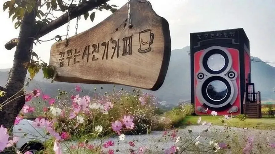 热爱摄影的老板把咖啡馆的外观设计为特殊的相机造型,再搭配上四周辽阔的田园美景,不管是哪个季节都能杀光顾客的底片,热爱旅游的你一定不能错过这个置身童话故事的机会。