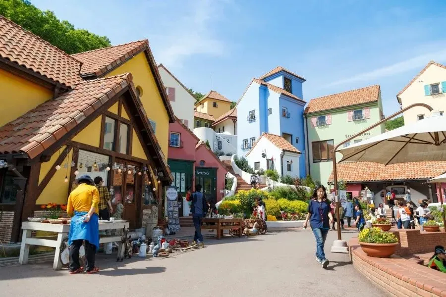 韩国的小普罗旺斯,坐落在首尔近郊坡州的一个小山坡上,远离了首尔都市的喧嚣,这里有着许多色彩缤粉的造型建筑,而且绝对不只是漆上不同颜色的油漆而已,每栋平房的窗台、花圃都设计得很用心,漫步在普罗旺斯村的路上就号像真的置身于热情的南法呢!
