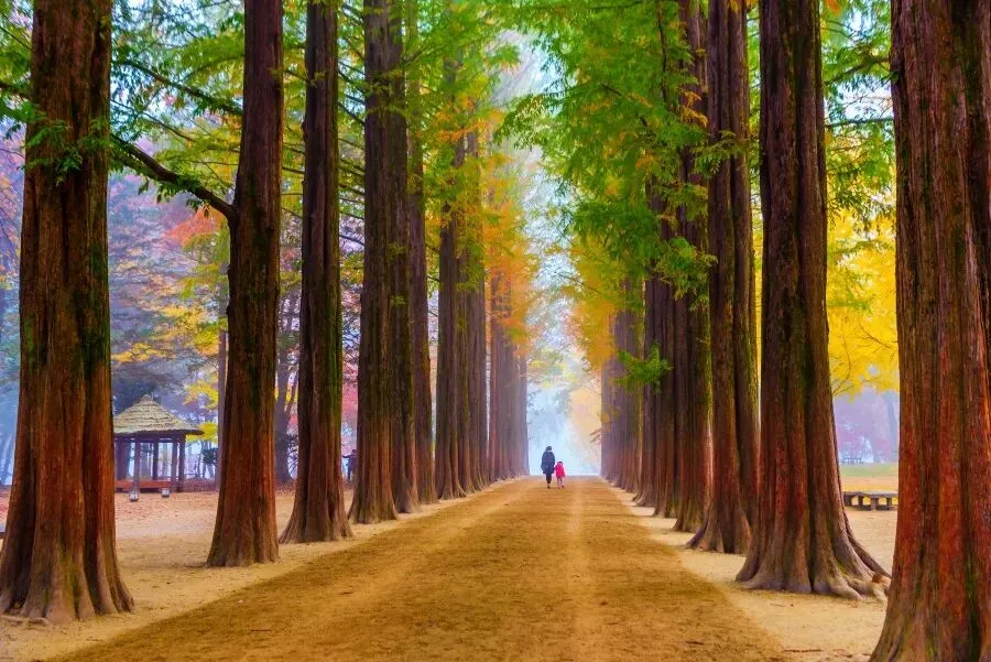 南怡岛 ▶︎ 最有名的《冬季恋歌》外景拍摄地。四季样貌都不同,银杏树及杉木林更是代表作,美景让人看了难忘!推荐秋天或冬天到访,惊艳的美景绝对让你流连忘返。