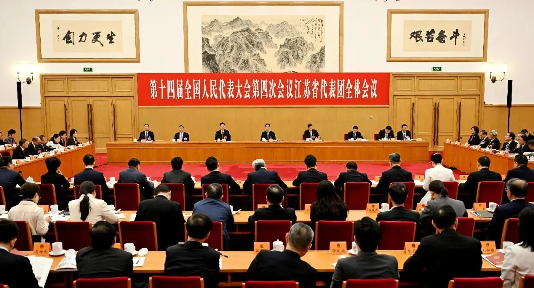 3月11日,十四届全国人大四次会议江苏代表团举行全体会议,传达学习习近平总书记在看望参加政协会议的农工党、九三学社、医药卫生界、社会福利和社会保障界委员并参加联组会,出席解放军和武警部队代表团全体会议时的重要讲话精神;继续审议全国人大常委会、最高人民法院和最高人民检察院工作报告。