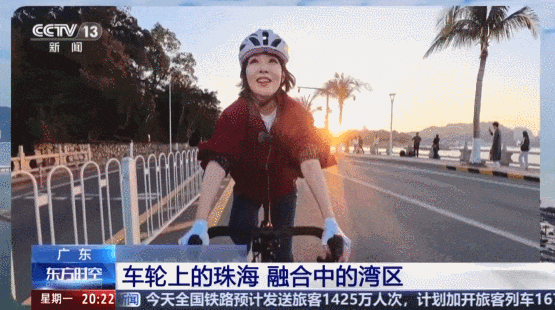 央视新闻主播骑着单车,