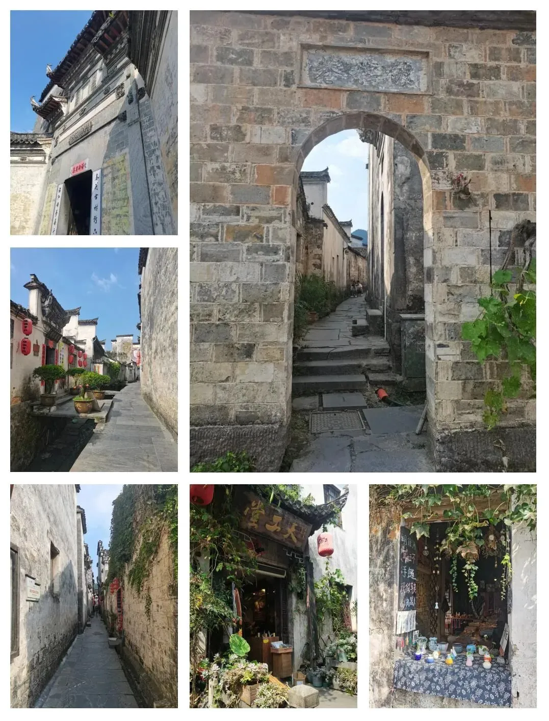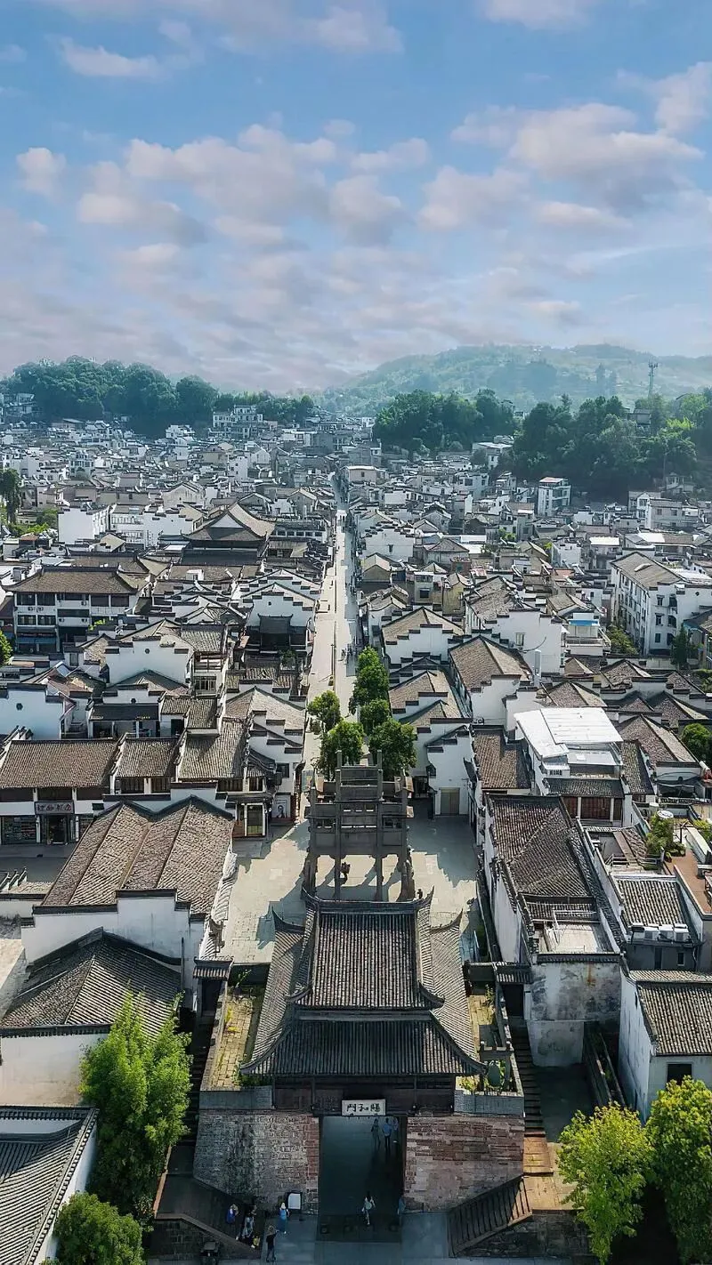 4.西递:西递村,安徽省黟县西递镇下辖行政村,中国传统村落,地处黄山南麓、黟县盆地南侧,村域面积10.7平方千米。西递村始建于北宋皇佑年间,发展于明朝景泰中叶,鼎盛于清代初期。西递村整体呈船形,四面环山,两条溪流串村而过。村落以一条纵向的街道和两条沿溪的道路为主要骨架,构成东向为主、向南北延伸的村落街巷系统。所有街巷均以黟县青石铺地,古建筑多为木结构、砖墙维护,木雕、石雕、砖雕丰富多彩,巷道和建筑的设计布局协调。村落空间变化灵活,建筑色调朴素淡雅,是中国徽派建筑艺术的典型代表。西递村文化底蕴深厚,拥有徽州三雕、徽州传统民居营造技艺两项国家级非物质文化遗产。