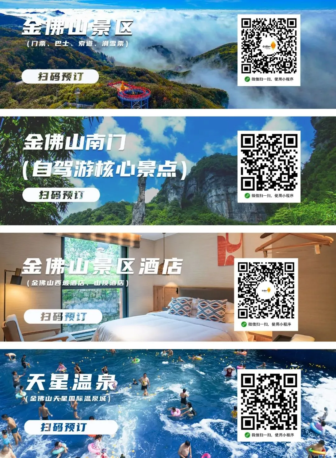 目前金佛山景区西门/北门索道区域风速较大,为保障安全,索道暂停运行。正在前往金佛山景区西门/北门的游客朋友,可选择通过“金佛山旅游”微信公众号、抖音、美团、携程等渠道线上预约从金佛山南门入园(温馨提示:金佛山南门每日限量200辆车),体验自驾登顶的快乐,也可以前往神龙峡景区、山王坪景区和南川东街等景点游玩。