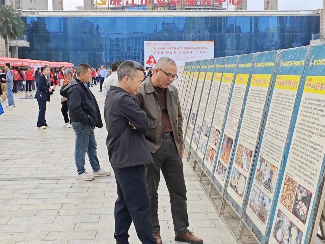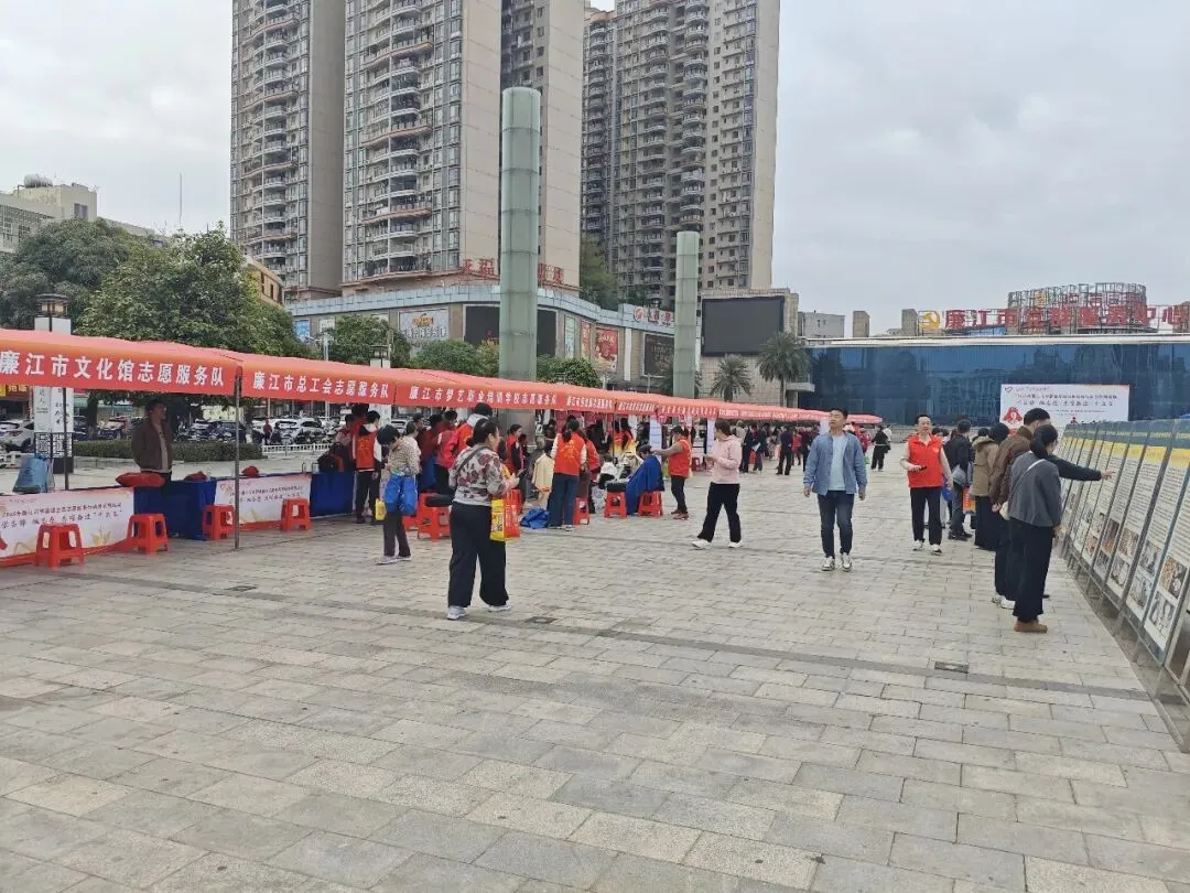 活动当天,文化广场人头攒动、暖意融融,“志愿红” 成为春日里最耀眼的底色。非遗图片展区与医疗义诊、便民服务、政策宣讲等志愿摊位相映成趣,构成了一场集公益服务与文化体验于一体的惠民盛宴。现场氛围温馨热烈,不少市民拍照分享,让廉江非遗通过朋友圈、社交平台进一步传播扩散,实现了“小展览、大传播”的效果。
