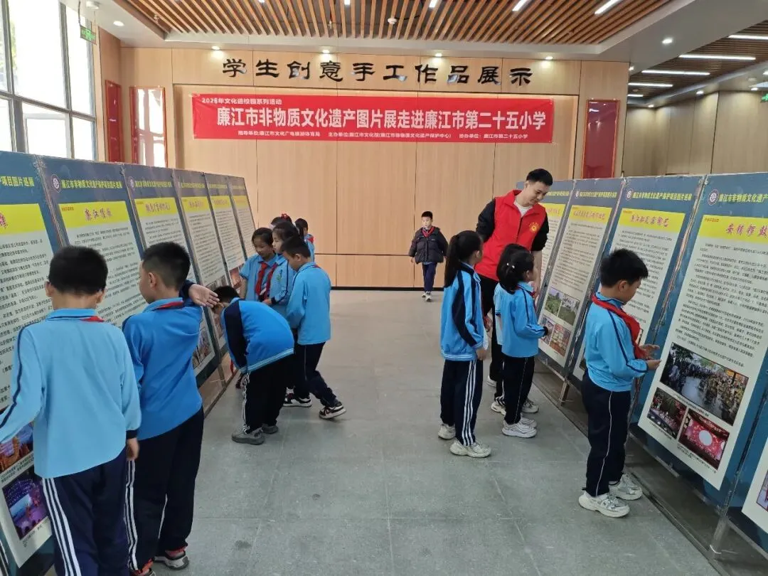 一方水土养一方文脉,一项非遗藏一段乡愁。为深入挖掘廉江本土非物质文化遗产内涵,推动非遗文化贴近群众、浸润人心,让古老文脉在新时代焕发新生机,近日,廉江市非物质文化遗产图片展先后走进廉江市鳄鱼生态公园、廉江文化广场、廉江市第二十五小学三大场地,以图文并茂的形式,全方位展现廉江非遗的独特魅力,让市民游客、师生群体近距离触摸本土文化根脉,感受非遗传承的深厚底蕴。