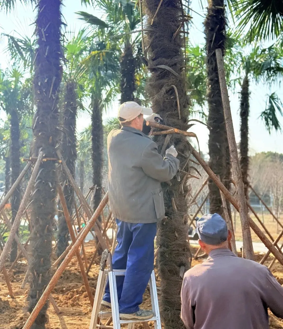 园林匠人俯身耕耘,