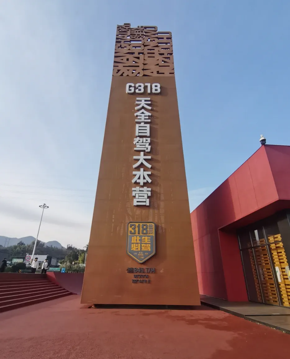 离开雅安向前31公里,来到第一个网红打卡点天全服务区,这里有此生必驾318的路牌,红底白字自带信仰感,随手一拍便是独属于川藏线的纪念。