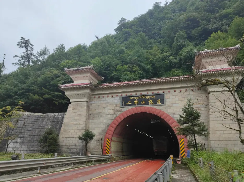 离开天全服务区,我们前行50公里,来到二郎山隧道,它是川藏线上的标志性隧道,隧道顶部悬挂着鲜艳的五星红旗,穿过隧道便正式告别了四川盆地,走进川西高原。