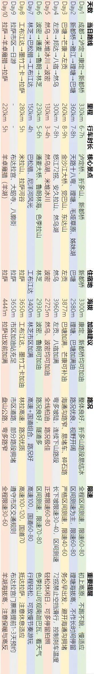 G318川藏线10天经典自驾行程