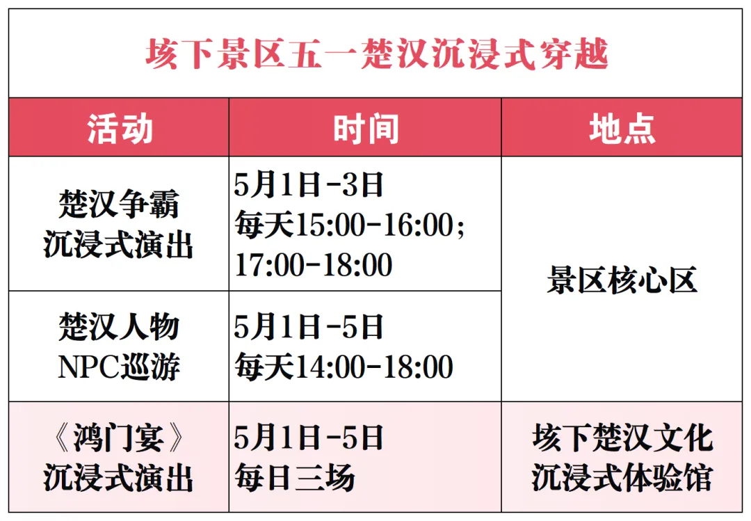 ⏰ 活动时间:5月1日-5月5日📍 穿越坐标:垓下遗址旅游景区📞 角色预约/活动咨询:0552-6856888