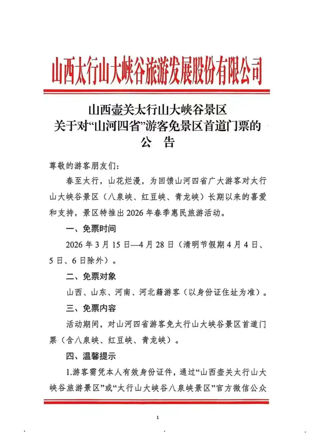 当三月的风唤醒了太行山脉的万千生机,千峰万壑褪去冬日素净,漫山山桃山杏次第绽放,峡谷间春水潺潺、草木萌新,我们带着诚意满满的春日惠民大礼,向山西、山东、河南、河北四省的朋友们,发出最诚挚的春日邀约。