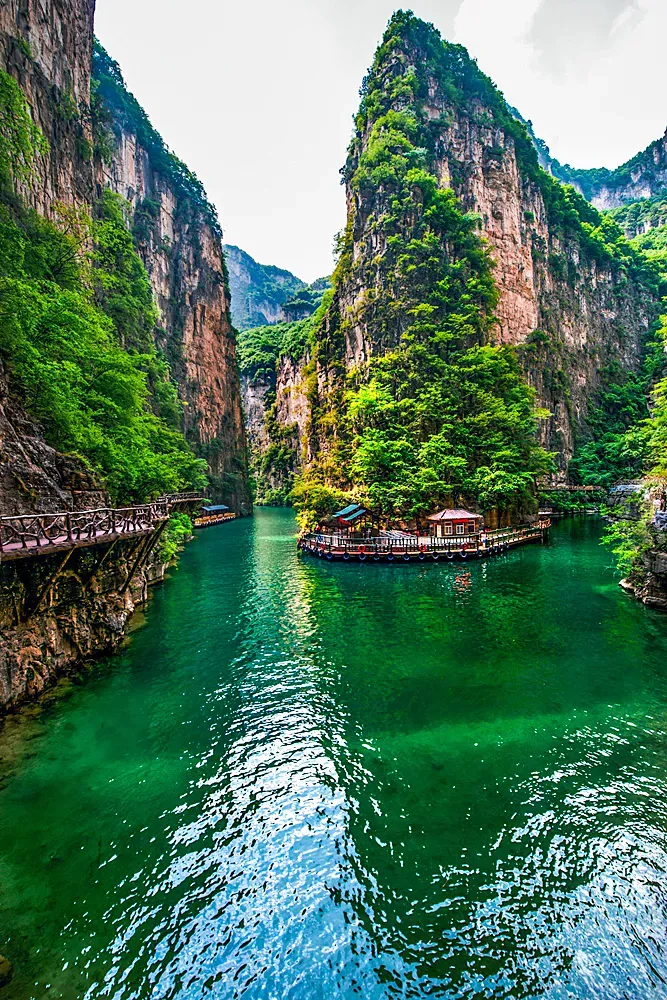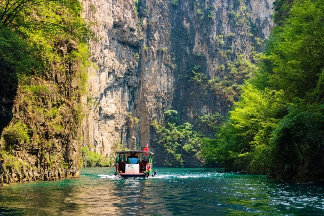 这里有广受游客认可的八泉峡,是太行山脉极具代表性的峡谷景观。你可以乘游船穿行在雄奇壮阔的绝壁之间,看两岸山花映着碧绿春水,感受“船在水中行,人在画中游”的诗意;可以坐索道凌空俯瞰,将漫山繁花与千峰竞秀的太行风光尽收眼底;也可以漫步绝壁栈道,近距离触摸太行山脉的亿万年地质奇观,在春日的清风里,沉浸式感受北方山川的雄奇与壮阔。