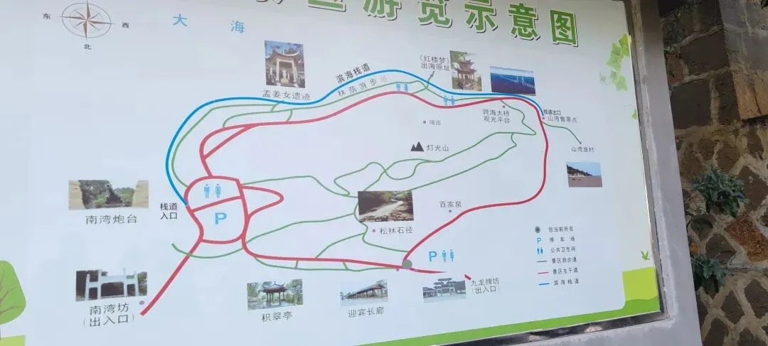 九龙山景区位于浙江省嘉兴市下属县级平湖市乍浦镇。在杭州湾北岸,它既是国家级九龙山森林公园,又是浙江省级九龙山旅游度假区,主要景区有南湾景区,外浦山景区等五、六个景区。先期我们在网上订好酒店,位于乍浦镇天妃路的汉庭酒店,设计好游览路线,分三个方向游,用一天时。2月21日(正月初五)一早我们从杭州出发,沿着杭浦高速到乍浦出口下。然后往乍浦镇方向开,共一个半小时就到达酒店,中午在酒店北面的南海鱼家用了中餐,回酒店休息,下午2:00出发,先游西边景点,沿着雅山中路往西走,到南大街左转向南往汤山公园,过大广场,到达国家级重点文物保护单位乍浦炮台中的西炮台一一天妃宫炮台,这个炮台正在搞维修,公园里好多游客在唱歌跳舞。30分钟后按原路返回,看到路边有个平湖市文保单位:乍浦古城碑牌子,实际上这个古城已经没有了,被后人造的民居覆盖了,我们从周边居民了解到,近年政府在西边建了仿古城墙,就立马过去参观,是新建的。参观好后原路返回酒店,晚饭在雅山中路的云南特色酸汤猪脚店用餐,58元的酸菜鱼做得很好,还有九芽炒蛋、海藻虾米汤、酸黄瓜、焦盐子排都不错。第2天一早游第二个景区,南湾炮台等。从酒店开车10多分钟就到景区仃车场,从东向西走,先是南湾炮台,保存的比较完好,有一个大铁炮是清光绪年间造的,用当时最先进的“阿姆期特朗”技术制造,是全国仅有保存的一座铁炮,炮台的外墙和顶部用“三合土”建造,牢固如水泥。沿着海滨栈道一路向西,风景独好,那天中午气温超20度,海风微微,不冷不热,还算舒适,上瞭望塔观乍浦港的全貌,海轮、渔船、跨杭州湾大桥、山边滩涂尽收眼底,当年孙中山先生在建国大纲中提到要在乍浦建东方大港,先生的远景基本实现。到红楼别浦石刻亭,这亭为上世纪九十年代的建筑,有大书法家启功先生题写的碑文,据史料记载,在清乾隆年间,有中国的红楼梦书籍刻本从乍浦港出港运到日本的故事,平湖把这一故事化为了景点,为一大妙笔杰作,值得点赞。现在有人调堪,所谓旅游就是“造谣”和造庙,当然乍浦这个不是造谣,而是有实在的真实记载。还有孟姜女遗址。游览一个多小时后从栈道往上走柏油大路返回停车场。然而又开车10多分钟到最后一个景点:外浦山景区,到游客中心,有一个可停千辆以上的大停车场,先买票,票价30元,70周岁以上免费,属马者免费。实际上外浦山就是杭州湾中的一个岛,有通天桥相连,岛上有个小普陀观音禅寺,还有一个灯塔,游览半个多小时后原路返回镇上,又到云南特色酸汤猪脚店用中餐,主要是回杭顺路,同时又去吃那酸菜鱼。饭后上杭浦高速回杭,两天的游玩到此结束。