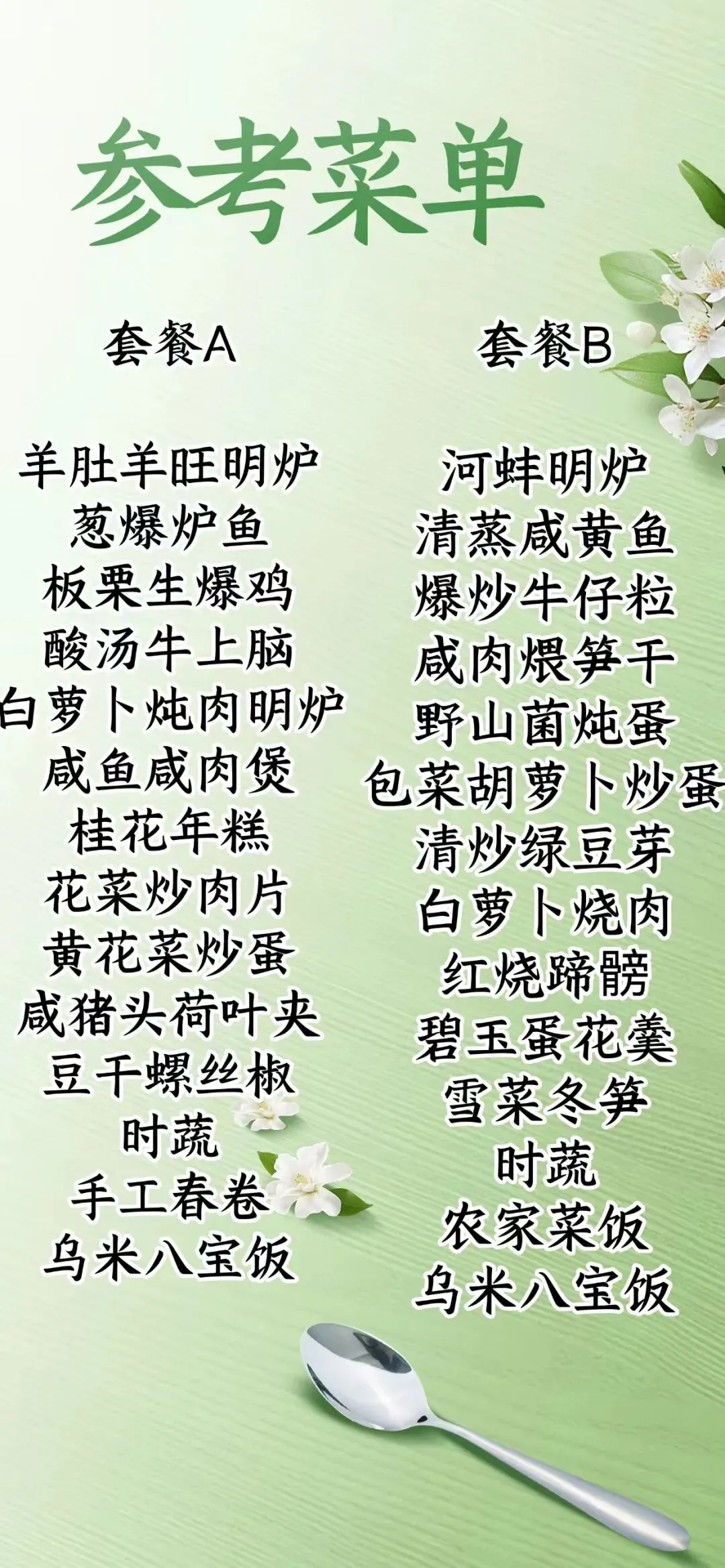 参考菜单具体以实际到店上菜为准,酒店会根据人数增加或减少菜品!