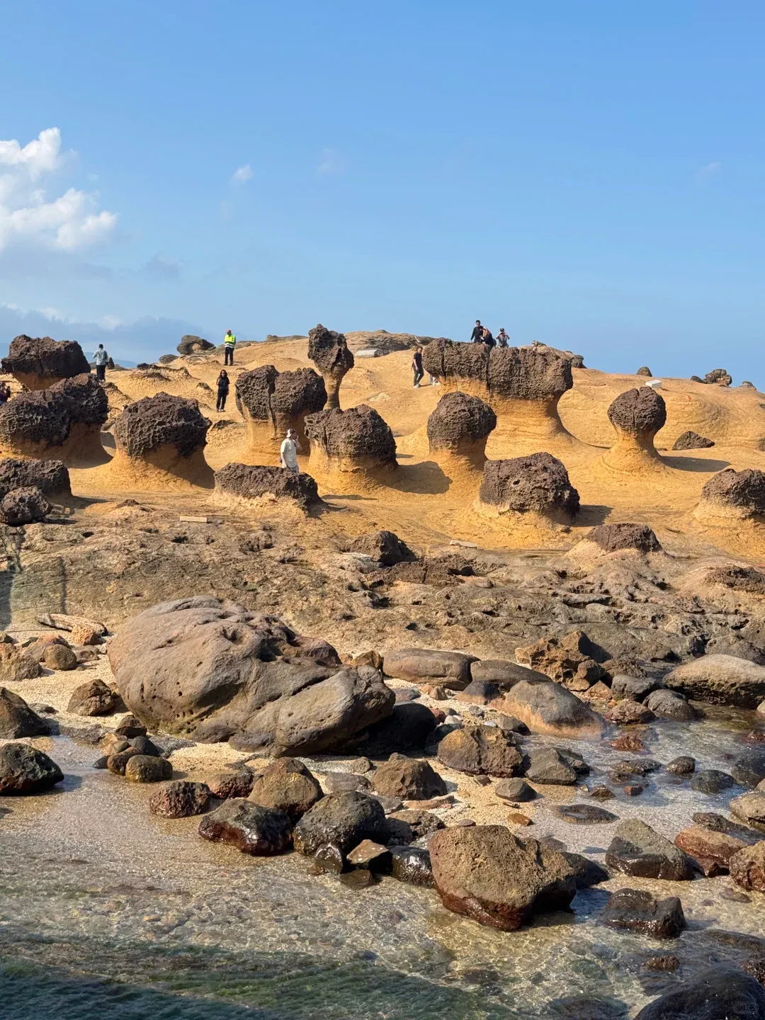 位于新北市万里区,是突出于北海岸的海岬,长约1700米,总面积约40公顷。因海浪侵蚀、风化作用,形成了独特的海蚀地貌,女王头、仙女鞋、烛台石是标志性奇石。园区分三大区域:第一区以女王头为核心,第二区有野柳海洋世界,第三区为海蚀平台与岩石景观,适合摄影与地质科普。