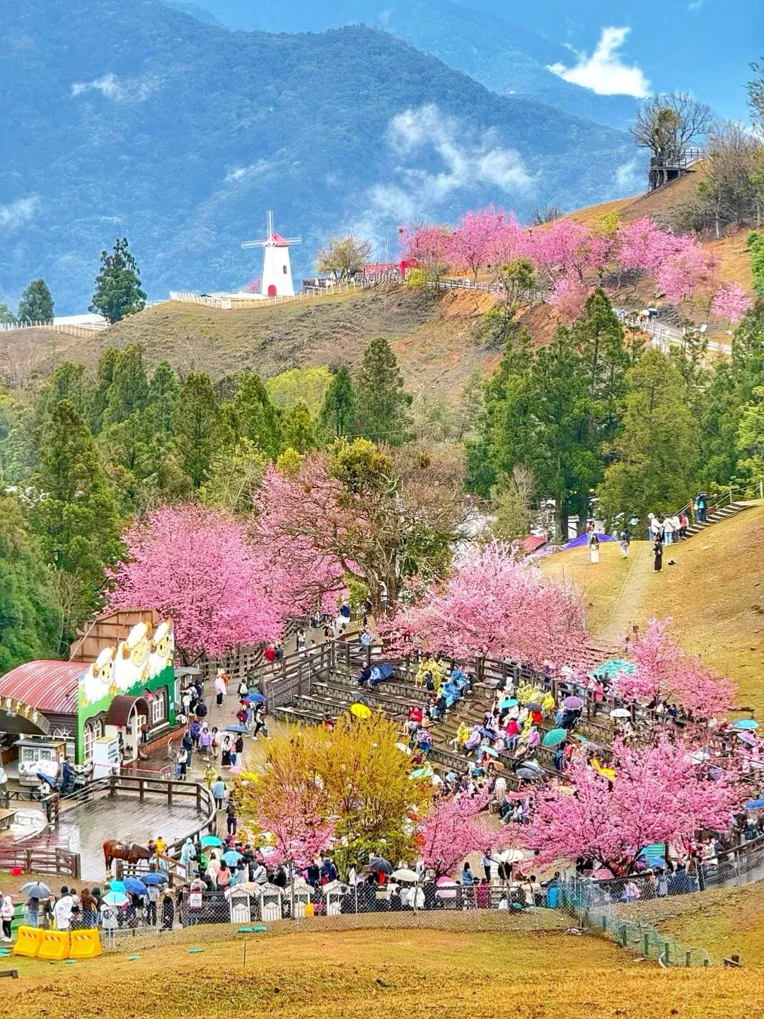 位于南投县仁爱乡,海拔约1748米,总面积约800公顷,是高山草原型农场。分绵羊区、牧牛区、蔬果区等,最知名的是青青草原,可以与绵羊近距离互动、看马术表演;农场周边有合欢山、奥万大国家森林游乐区,春季樱花、夏季草原、秋季枫叶、冬季雪景,四季风光各不相同。