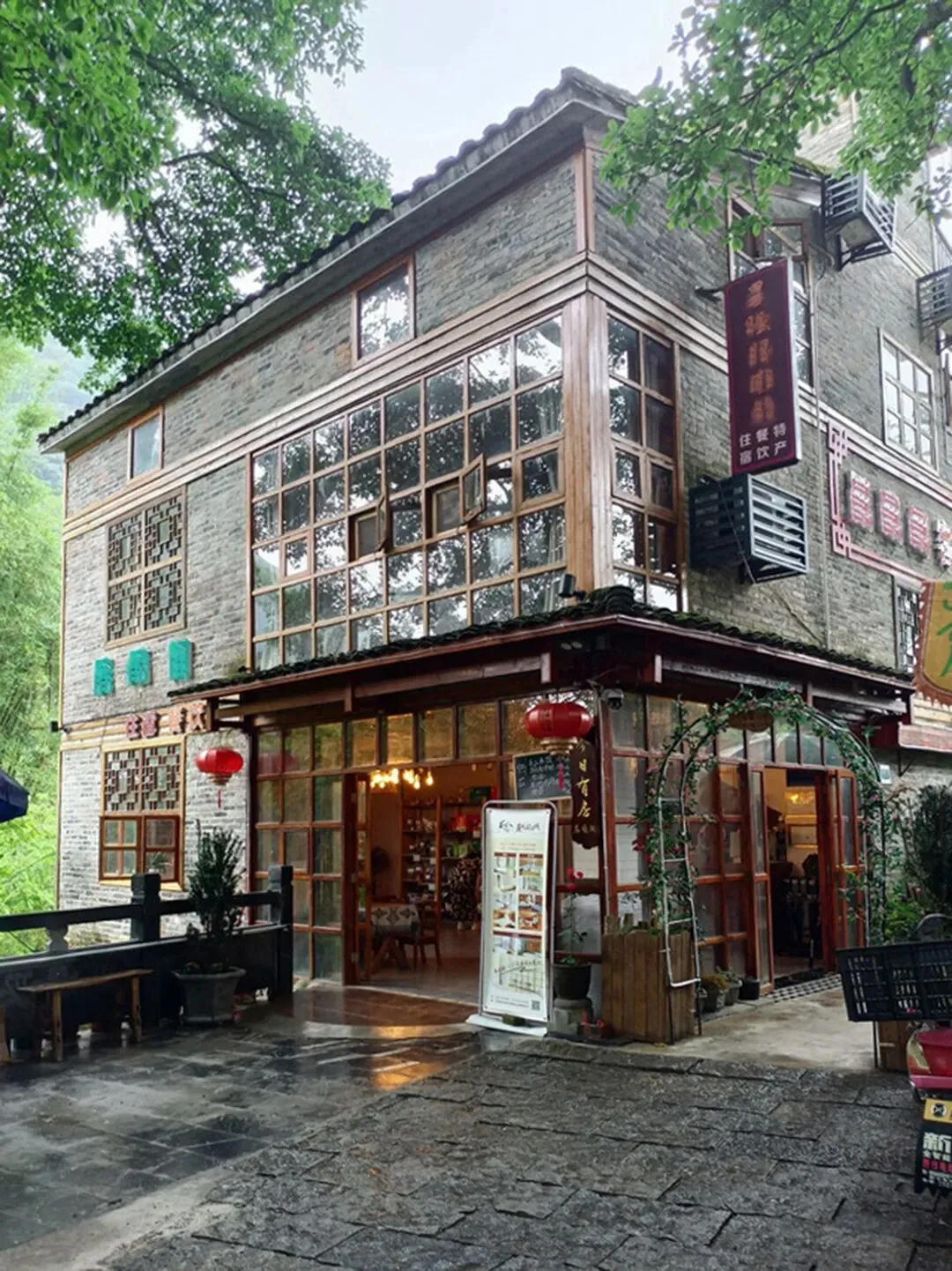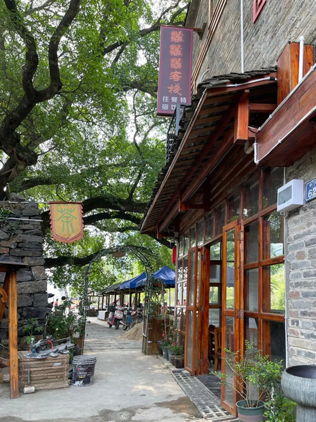 客栈紧挨着黄姚古镇古老的东门楼,位置相当优越;当时这里是4A景区的后门,2022年黄姚评为5A景区后,正门做了调整,现在客栈位置则成为了景区的前门。