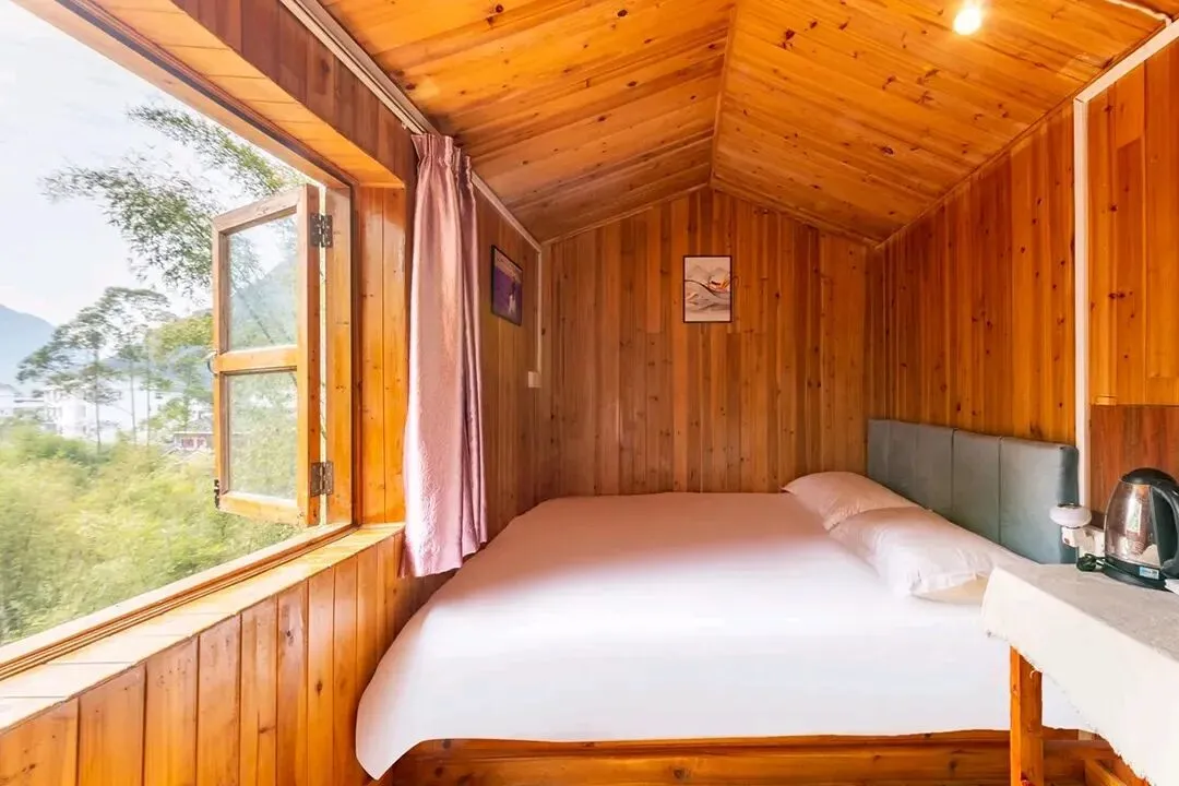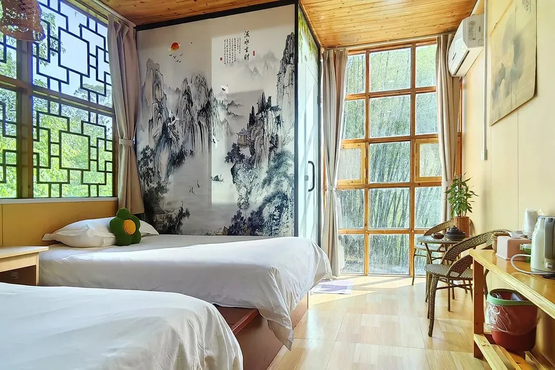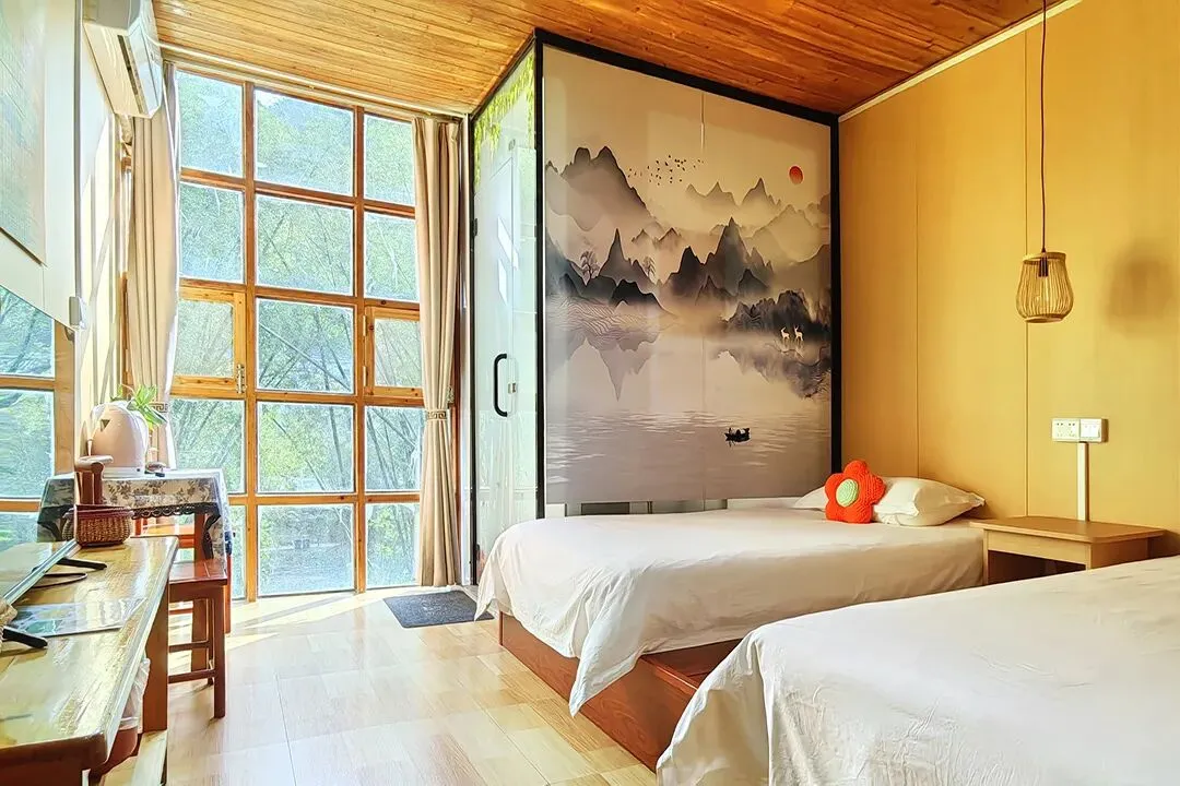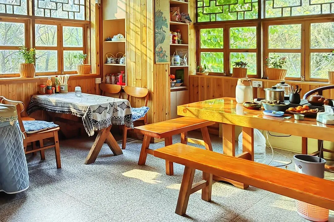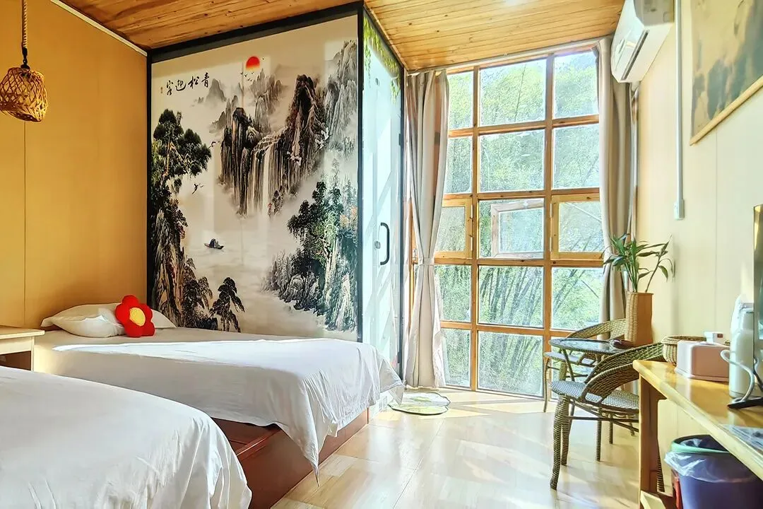 客栈共有客房11间,拥有大床房、双床房、三人间、亲子四人间和家庭套间等房型;每间客房均有独立卫生间和落地窗,室内通透明亮,有较好的自然采光和通风;整体风格保持了古镇的古朴和静怡,居住起来非常惬意。