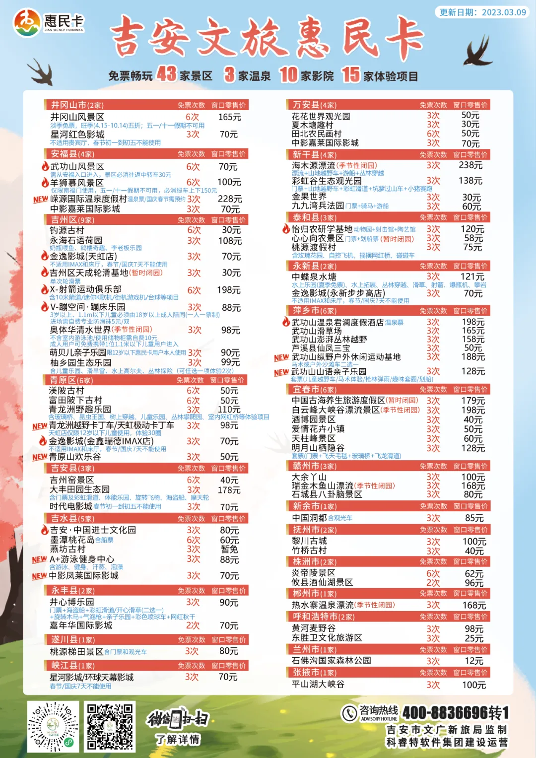 ★如需了解最全最新惠民卡咨询,敬请关注“云游吉安”或“吉安文旅惠民卡”公众号。