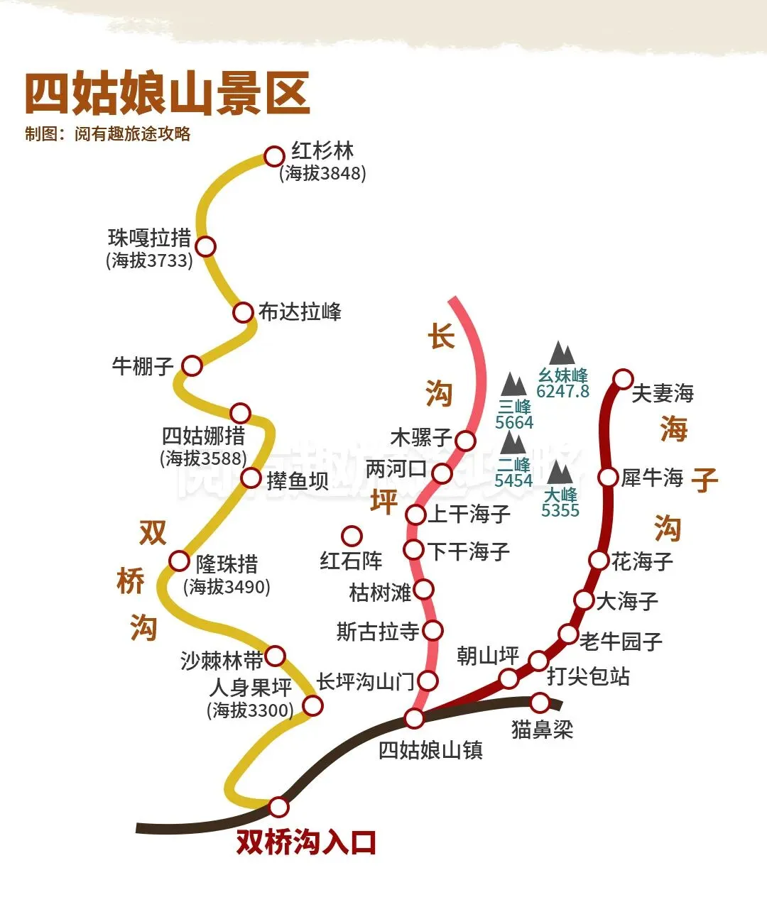 总览:甘白路(S458)是连接甘孜县 ↔ 白玉县的高原景观大道,全长约220 公里,被誉为 “中国最美自驾县道”,串联雪山、草原、海子、古寺与峡谷,人少景野、路况友好。主线:甘孜县(3400m)→卓达拉山(隧道 / 垭口 4600m)→拉龙措 →昌台草原 →亚青寺 →白玉县(3030m)路况:全线柏油铺装,双向两车道;弯多、坡陡、临崖,轿车可通行,SUV 更稳妥总览:格聂环线是川西顶级越野自驾路线,被誉为 “川西最后的秘境”。它让你能以近乎贴身的距离、全方位的视角仰望四川第二高峰——格聂神山,并穿梭于其腹地的雪山群、原始森林、河谷与高山草甸之间,每一处风景都如大自然精心雕琢的艺术品。它的“所长”在于为勇于探索的旅行者,提供了一场集极致自然风光、硬核越野挑战和深度人文体验于一体的荒野冒险。景区介绍:位于阿坝藏族羌族自治州小金县四姑娘山镇,属邛崃山脉中段,核心为三沟四峰:双桥沟、长坪沟、海子沟,以及从北到南的大峰(5355 米)、二峰(5454 米)、三峰(5664 米)、幺妹峰(6247.8 米,四川第二高峰)。垂直高差大,形成干旱河谷、高山草甸、冰川地貌等多元生态带,森林覆盖率高,有大熊猫、雪豹等珍稀物种。景区介绍:位于阿坝藏族羌族自治州松潘县,岷山主峰雪宝鼎(海拔 5588 米)脚下,距九寨沟约100公里。核心黄龙沟长约3.6 公里,海拔跨度3100–3650米;整体面积700 平方公里,海拔1700–5588米,拥有冰川遗迹、原始森林、高原湿地,是大熊猫、金丝猴等珍稀物种的栖息地。黄龙以彩池、雪山、峡谷、森林四绝为骨架,叠加滩流、古寺、民俗合称七绝景区介绍:位于阿坝藏族羌族自治州九寨沟县漳扎镇,地处岷山南段弓杠岭东北侧,因沟内九个藏族古村寨而得名。景区呈经典Y字形分布(树正沟为Y的竖,日则沟、则查洼沟为两臂),主沟长约30公里;海拔从沟口2000米至南缘4500 米以上,垂直气候带明显,原始森林密布,是大熊猫、金丝猴等珍稀物种的栖息地。九寨沟景区-素有童话世界、水景之王的美誉,国家5A级景区,以 “翠海、叠瀑、彩林、雪峰、藏情、蓝冰”六绝闻名于世。景区介绍:位于甘孜藏族自治州稻城县香格里拉镇,地处横断山脉沙鲁里山系。藏语 “亚丁” 意为向阳之地;核心三怙主雪山(仙乃日、央迈勇、夏诺多吉)呈品字形排列。海拔从景区入口约 2900 米,至仙乃日主峰 6032 米。稻城亚丁被誉为水蓝色星球上最后一片净土、中国香格里拉之魂,是国家 5A 级景区,以三怙主雪山与高原圣湖的极致纯粹著称。景区介绍:位于阿坝藏族羌族自治州理县朴头镇梭罗沟,地处邛崃山脉、四姑娘山北麓。景区全长约 35 公里,海拔从沟口2015 米至主峰 5922 米;核心游览区沿 “大门→龙王海→娜姆湖→上海子接待中心→磐羊湖→燕子岩窝” 的线性展开,观光车 + 电瓶车是主流游览方式。毕棚沟景区—— 国家 4A 级景区、米亚罗自然保护区核心区,有川西小瑞士之称,以雪山、彩林、海子、红石、冰川、温泉的立体景观著称,是川西短途自驾与四季摄影的热门目的地。