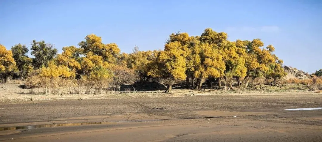 黑河分水纪念碑对面停车场的胡杨