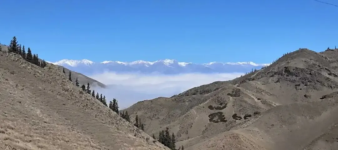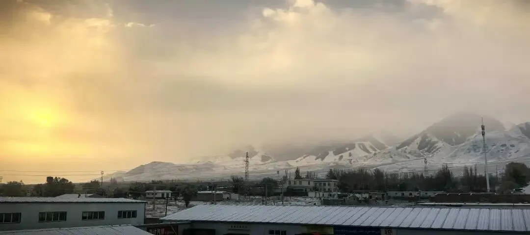 第五站,巴里坤。在巴里坤之前还有个尹吾县,也有个胡杨林景区,我们是先导的哈密(AI提供的路线,让我们多走了几百公里),这个地方我们没去。建议大家提前走G335,可以沿着雪山跑。我们是从哈密过去的,走的哪个高速记不清了,过天山的时候有个12公里的隧道。翻过天山后,基本就是在雪山的半山腰,我们走的路上下起了小雪,景色很是优美。建议沿G335国道找住宿的地方。我们住的地方是广安鑫宾馆,价格便宜,不到200元,拉开窗帘就能看到雪山,还有暖气,也干净。到了巴里坤一定要吃羊肉焖饼,我们在那里没吃上,到的时候下午4点多,一直没吃饭,在网上找了一家,去之后人家要下班,就在附近的店里吃了个拌面。
